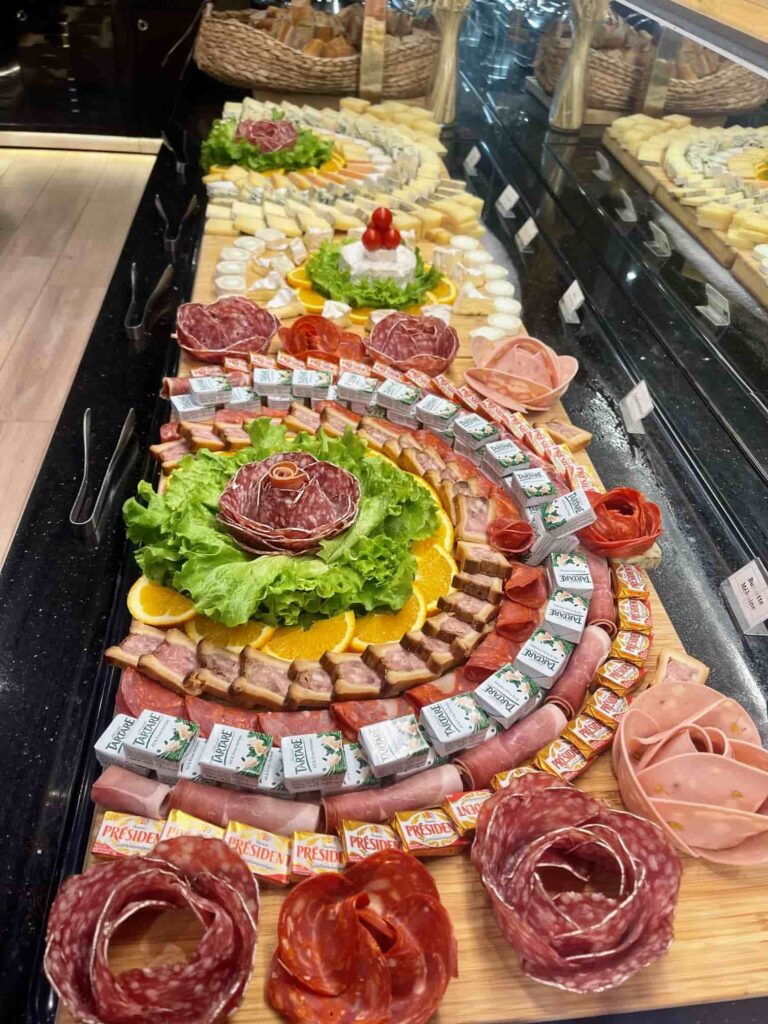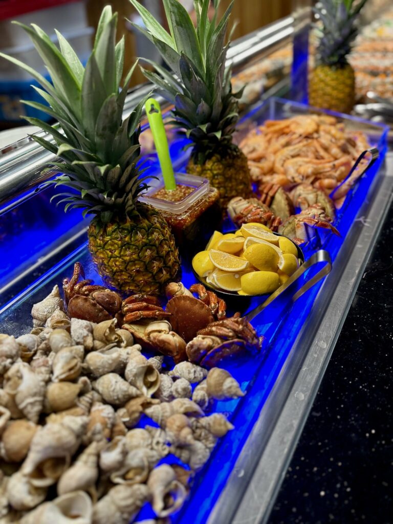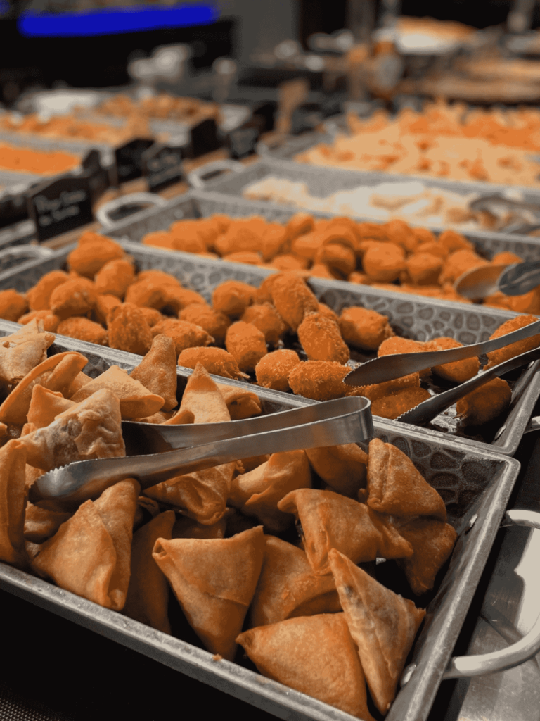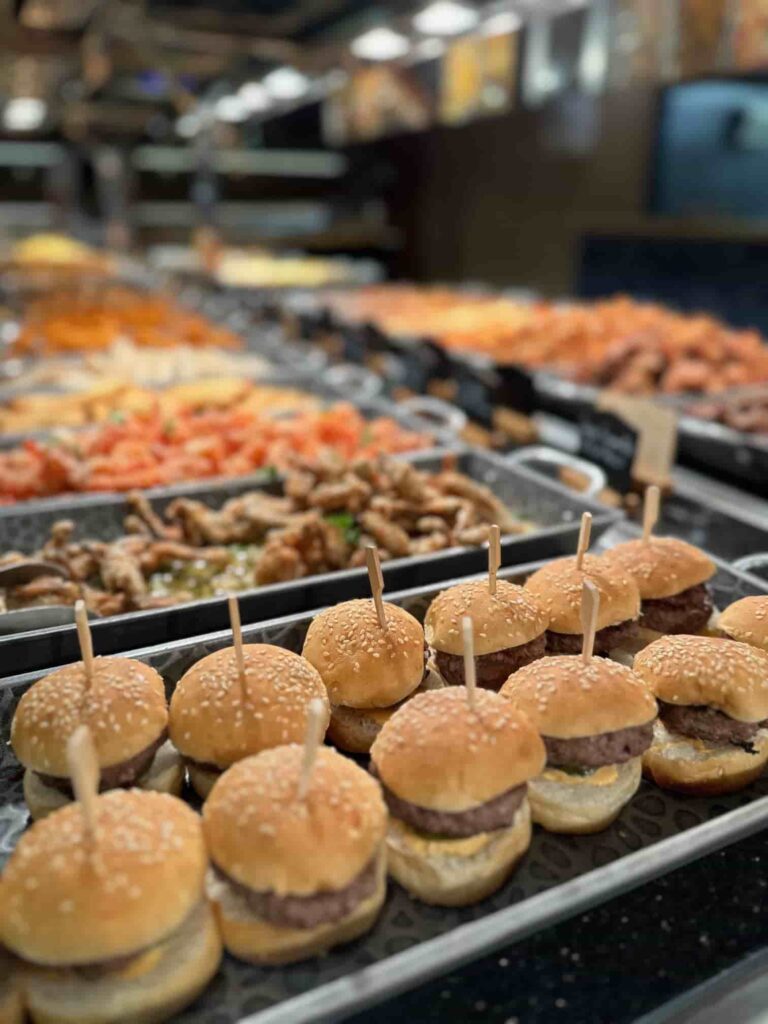 Notre restaurant propose un buffet de différentes spécialités : asiatique (sushis, makis, nouilles sautées, nems, pad thaï, poulet curry…), européenne (gratin, pizza, fromage, charcuterie) et bien sûr un bar à salade, des woks et des grillades à composer par vous même. Notre variété de desserts (glaces, verrines sucrées…) et des fruits vous régaleront également à la fin de votre repas.